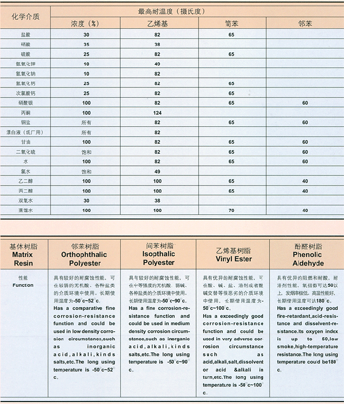 | 耐腐蝕性能表/樹脂選型表 |